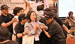 Lee's platform focuses on four themes: fighting for democracy, better living, a stronger civil society and resisting the "mainlandisation" of Hong Kong, while Chan said she intended to put citizens' welfare above politics. She admitted to being a member of the pro-Beijing camp only after she denied it even though her campaign rally attended by leaders from the camp.[16] Chan also relied on the high popularity of former Secretary for Food and Health Ko Wing-man to sway swing votes, while Lee, learning from the defeat in March, struck a better balance between online and on-the-ground campaigns as the March pro-democracy candidate Yiu Chung-yim was criticised for focusing too much on online campaigns.[17] He also highlighted his crucial goal of preventing a pro-Beijing dominance in the geographical constituencies, which meant the pro-democracy would lose the veto power against pro-Beijing attempts of changing the Rules of Procedure of the Legislative Council if they gained one more seats over the pro-democrats.