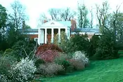 The architecture is distinctive for "its unusual pentastyle portico".[6] It is suggested that Thomas Jefferson, his close friend, may well have drawn plans for Oak Hill; the construction was supervised by James Hoban, designer and builder of the White House.[5] Aside from the main house, other structures remaining from Monroe's time include the cottage, a smokehouse, springhouse, blacksmith's shop, a square barn, the stone Stallion Barn, and possibly the Brick House.[4] The estate is a designated U.S. National Historic Landmark.