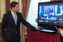 Ryan (age 45) was the youngest person elected as speaker since James G. Blaine (age 39) in 1869. After the vote Ryan delivered his first remarks as speaker-elect and was sworn in by John Conyers, the dean of the House.[3]