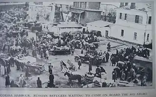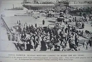 ![]() Refugees of Odessa and White Army troops trying to flee from the Red Army. | |||||||