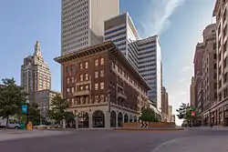 In 2010, Tulsa officially designated the central part of its downtown as the "Oil Capital Historic District" for the purposes of a proposed registration in the National Register of Historic Places.[31] The district, at 36.151°N 95.990°W, is bounded by Third Street on the north, Cincinnati Avenue on the east, Seventh Street on the south and Cheyenne Avenue on the west. It was officially listed on December 13, 2010 under Criterion A for significance in Commerce. Its NRIS number is 10001013.[32]
