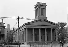 The congregation was formed in the Dutch colonial village of Bergen in 1660, located across the Hudson River from the town of New Amsterdam in what is today Lower Manhattan.[5] The first services were held in a log schoolhouse.[6] In 1680 an octagonal, sandstone church was built by William Day. The church was located on Vroom Street, between Bergen and Tuers Avenues. The congregation outgrew the original church and a second church was erected in 1773. This church was also made of sandstone and was located at the corner of Bergen Avenue and Vroom Street. The third and current church was built in 1841 by William H. Kirk and Company and Clark and Van Nest.[5]