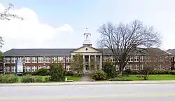 Old Greenwood High School is a historic high school building located at Greenwood, Greenwood County, South Carolina. It was designed by the firm of Wilson, Berryman & Kennedy and built in 1925–1926. It is a complex of three brick buildings – the main building, the auditorium, and the gymnasium – each of which is in the Georgian Revival style and form a Palladian configuration. Each of the three buildings features a portico supported by six Tuscan order columns. The complex was completed with construction of the gymnasium building in 1929–1930.[2][3]
