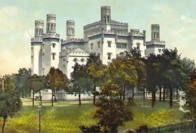 In 1859, the statehouse was featured and favorably described in De Bow's Review, the most prestigious periodical in the antebellum South. Mark Twain, however, as a steamboat pilot in the 1850s, loathed the sight of it, "It is pathetic ... that a whitewashed castle, with turrets and things ... should ever have been built in this otherwise honorable place."[5]