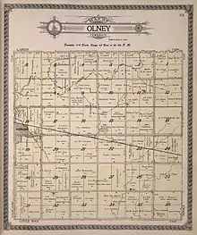 Organization of Olney Township was approved by the Nobles County Board on July 10, 1873. The original name selected was Hebbard Township in honor of pioneer settler William F Hebbard. However, no township meeting was called until October 14, 1873, and shortly before this meeting occurred, the Nobles County Board changed the name to New Haven Township. Shortly thereafter, the county was informed by the state auditor's office that another New Haven Township existed elsewhere in the state. Finally, on June 15, 1874, the board accepted the suggestion of pioneer settler R. W. Moberly that the township be named after Olney, Illinois, county seat of Richland County, Illinois.[3]