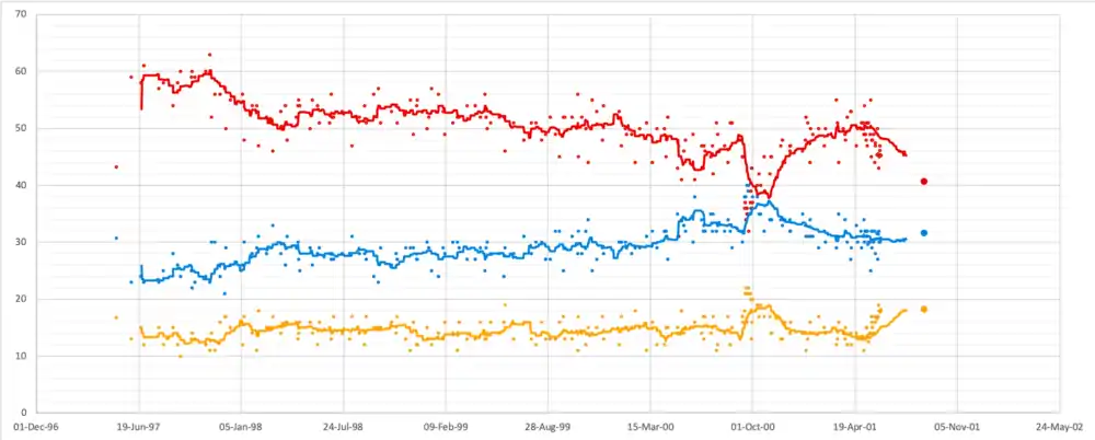 | 26 Sep 2000 | MORI/Times | 37% | 35% | 21% | 2% | ||