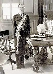 On December 2, 1931, President Arturo Araujo was overthrown by Army officers over anger that they had not been paid.[3] Colonel Osmín Aguirre y Salinas took part in the coup and helped establish the Civic Directory.[4] The Civic Directory handed over the Presidency of El Salvador to then Vice President General Maximiliano Hernández Martínez on December 4. Aguirre y Salinas acted as Director of the National Police during Hernández Martínez's presidency from 1931 through 1944.