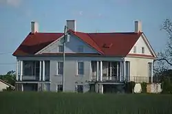 Otterburn is a Palladian-influenced Greek Revival plantation house near Bedford in Bedford County, Virginia. The hilltop house was first built in 1828 for Benjamin A. McDonald (1797-1871) and his wife, the former Sally Camm of Lynchburg, and overlooks the Little Otter Creek watershed. Benjamin A. McDonald, a prominent local Whig educated in Scotland, was appointed a local justice of the peace in 1832 and won election as Bedford County's first presiding justice in 1852. Re-elected twice, he served in the county's highest office from 1852 through 1864. His associated plantation in 1825 was 1,651-acre (668 ha), and included a gristmill, sawmill and dependent structures, mostly operated by enslaved labor (more than 20 slaves in the 1820s and 1830s, more than 30 slaves in 1840). At its largest, the associated plantation encompassed about 2,800-acre (1,100 ha) acres, but in modern times includes fewer than 16-acre (6.5 ha) acres. Fire gutted the original house in 1841, and it was reconstructed in the Greek Revival style by 1843, with an unusual transverse hall plan, facade that makes the 2 1⁄2-story structure look only 1 1⁄2 stories, and the addition of a loggia, cross-gable roof with a wrought iron balustrade and Greek Revival detailing. The surviving wash house also dates to this mid-19th-century era. During the Civil War, Union soldiers reportedly confiscated flour barrels from the house, and damaged interior stairwell railings when rolling them out. After McDonald died in 1871, since his only child, a daughter, did not survive infancy, the property passed through several owners until 1950, when the house became the Hines Memorial Pythian Home, an orphanage operated by the Knights of Pythias. A detached dormitory added at this time remains but lacks historic significance. The orphanage closed in the early 1960s. For two years in the late 1960s the Otterburn Academy used the premises, as a private school formed during Virginia's Massive Resistance to desegregation. The property later became a rest home for the elderly.[3] The house is being restored.