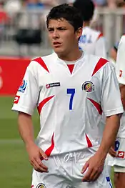 He made his senior debut for Costa Rica in a friendly against Peru on 22 August 2007.[7] He scored his first goal in a 2010 FIFA World Cup qualifying match against the United States on 3 June 2009.