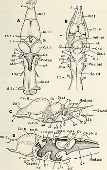 - Sneddon, L.U. (2004). "Evolution of nociception in vertebrates: comparative analysis of lower vertebrates". Brain Research Reviews. 46 (2): 123–130. doi:10.1016/j.brainresrev.2004.07.007. PMID 15464201. S2CID 16056461.