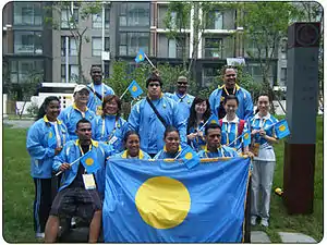 At the Closing Ceremony athletes entered in a less formal style, led by the flag bearers of all the competing nations.[5] The Palauan flag was carried by swimmer Amber Yobech.[6]