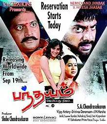 Pandhayam (Tamil: பந்தயம்; transl. Bet) is a 2008 Indian Tamil-language action thriller film directed by S. A. Chandrasekhar, starring Nithin Sathya and Sindhu Tolani while Prakash Raj, Raadhika, and Ganeshkar play supporting roles. Vijay did a guest role as himself. The music was composed by Vijay Antony. The film was released on 19 September 2008.