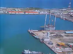The Dos Bocas port (Puerto dos Bocas in Spanish) was constructed in 1979 and started operating in 1982. It was enlarged starting in 1982 with the East and West Piers. In 2005, the multi-purpose terminal began operating and an industrial park was established.[17] It primarily exists for the shipment of petroleum but also handles other industrial and commercial cargo.[18] The Puerto de Dos Bocas accounts for as much as 85% of Mexico's oil production and imports equipment and machinery for oil exploration and development activities.[17] The port also imports products, equipment, and machinery to support local agricultural production, much of which is exported. It also exports include bananas, mango, pineapple, Persian lemon, papaya, orange, coffee, sugar cane, cocoa, and peppers as well as products based on livestock.[17] Exports out of the port mostly come from the states of Tabasco, Campeche, Chiapas and the south of Veracruz.[18] In 2008, Dos Bocas exported about 8 million tons of cargo, down dramatically from its peak in 2003 when over 30 million tons of foreign trade cargo was exported. It also received about two thousand passengers in 2008.[17] The port primarily ships to Brownsville, Houston, Galveston, New Orleans, Mobile and Jacksonville, but cargo also goes to and from other ports in southeast Mexico and Central America, the Caribbean, Europe, North Africa and the Middle East.[18][19] The Dos Bocas port also offers guided tours.[20]
