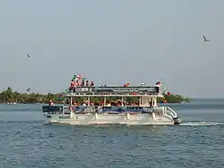 The most popular tourist area of the municipality is the Puerto Ceiba area due to its vegetation, docks as well as its inn with restaurant.[2][3] Seafood dishes typical of the area include oysters, and tourists can also tour the Mecoacán Lagoon by boat.[1] The Parador Turístico Puerto Ceiba is a look out area for the Mecoacán Lagoon. It offers boat tours on the Gonzalez River to the Gulf as well as the Mecoacán and Bellote Lagoons.[14][15] The Aqua Terra Paradise rents kayaks and paddle boats and offers rides on banana boats, motor boats and gives classes on recreational diving. There is also services for recreational fishing, snorkeling and night diving.[14]