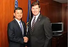 Patrick Joseph Murphy (born October 19, 1973) is an American politician and attorney who served as the 33rd United States Under Secretary of the Army. He was the first veteran of the Iraq War to be elected to the United States House of Representatives, representing Pennsylvania's 8th congressional district from 2007 to 2011. Murphy is a former anchor of Taking the Hill on MSNBC. Murphy is currently a Senior Managing Director at Ankura Consulting in Philadelphia[1] and the Distinguished Chair of Innovation at the United States Military Academy.[2]