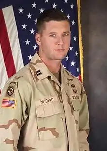 While in Baghdad as a JAG Corps attorney with the U.S. 82nd Airborne Division, Murphy worked to reconstruct the justice system and helped prosecute Sheik Mohammed Ali Hassan al-Moayad, a lieutenant of Muqtada al-Sadr.[14] Prior to being assigned to the 82nd, Murphy qualified as a Basic Parachutist and graduated the Air Assault course. He was awarded the Bronze Star Medal for meritorious service in Iraq.[15] Following his service in Iraq, he returned to Fort Bragg and continued his service as a JAG officer before being released from active duty in 2004.[13]