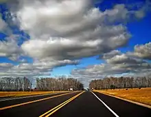 In the 1930s, US 611 was realigned to follow Delaware Drive between Martins Creek and Portland, replacing the entire length of PA 827. The former alignment of the route between Martins Creek and Mount Bethel via Bangor was designated as PA 712; this road is now unnumbered Main Street and Lower South Main Street between Martins Creek and Bangor and PA 512 between Bangor and Mount Bethel. US 611 and PA 612 switched alignments between Delaware Water Gap and Stroudsburg in the 1930s, with US 611 realigned to follow Foxtown Hill Road and Park Avenue between Delaware Water Gap and Stroudsburg and PA 612 designated to follow the former alignment of US 611 between Delaware Water Gap and Stroudsburg via East Stroudsburg along Broad Street, Brown Street, Prospect Street, Ridgeway Street, Bridge Street, and Main Street.[22] By 1940, US 611 was extended north along US 11 to follow Green Ridge Street, Main Avenue, and Market Street to end at US 6 at Keyser Avenue in Scranton.[23] In the 1930s, US 611 was widened into a multilane road across the Neshaminy Creek, between south of Doylestown and Plumsteadville, between US 46 in Portland and Slateford, between Delaware Water Gap and south of Stroudsburg, from a point north of the PA 507 intersection north to the newly constructed PA 307 in southern Lackawanna County, and between south of Dunmore and Scranton.[22] During the 1940s, US 611 was upgraded to a multilane road between Philadelphia and south of Doylestown, between south of Stroudsburg and north of the PA 507 intersection, and along a short stretch to the north of PA 348 in Lackawanna County.[24] By 1950, US 611 was realigned to bypass Pipersville to the west, with the former alignment becoming Old Easton Road. By this time, the route was also shifted west to a new alignment between north of PA 113 and north of Ottsville, with the former alignment becoming Durham Road.[25] US 611 was extended further north along US 11 to end at US 6 at the northern edge of Scranton in the 1950s. In the 1950s, PA 291 replaced the PA 191 designation along Broad Street between Moyamensing Avenue and US 611 at Philadelphia City Hall.[26] In the 1950s, US 611 was upgraded to a divided highway between Philadelphia and PA 63 in Willow Grove, between Scotrun and PA 196 in Mount Pocono, and along a short stretch south of PA 490 in Tobyhanna.[27] The section of US 611 between PA 590 in Elmhurst and Dunmore was improved to a divided highway in 1958, with the section of the route leading into Dunmore moved to a new alignment.[27][28]