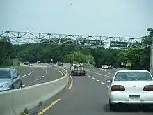 In 1953, US 611 was realigned between Portland and Delaware Water Gap to cross the Delaware River on the Portland-Columbia Toll Bridge into New Jersey, where it continued along a new multilane road on the east bank of the Delaware River before crossing back into Pennsylvania on the Delaware Water Gap Toll Bridge. The former alignment of the route in Pennsylvania between Portland and Delaware Water Gap was designated as US 611 Alt.[27][29][30] By 1960, the alignment of US 611 across the Delaware Water Gap Toll Bridge became part of I-80.[27] On December 1, 1962, the American Association of State Highway Officials (AASHO) approved realigning US 611 to follow I-80 between the northern terminus of US 611 Alt. in Delaware Water Gap and Scotrun.[31] In 1963, the Pennsylvania Highways Department recommended replacing US 611 Alt. with US 611, with the US 611 designation to be removed from I-80.[32] On December 5, 1964, approval was given by AASHO to realign US 611 to follow the alignment of US 611 Alt. between Portland and Stroudsburg and the former surface alignment between Stroudsburg and Scotrun instead of following I-80 and crossing the Delaware River twice to run through New Jersey.[33][34] Signs reflecting the realignment were to be changed by April 1, 1965.[34] US 611 was upgraded to a divided highway between County Line Road north of Horsham and Doylestown in the 1960s. The section of US 611 between Tobyhanna and Gouldsboro was upgraded to a freeway and became part of I-81E (now I-380) in the 1960s.[35] On December 5, 1964, AASHO approved eliminating the section of US 611 between I-81 in Dunmore and US 6/US 11 in Scranton, cutting back the northern terminus of US 611 to the interchange with I-81 in Dunmore.[33] US 611 was rerouted to follow a section of the I-81E freeway in Dunmore to end at I-81.[35]