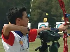 The Philippines was represented in the Men's individual archery event by Mark Javier, who earned his spot at the Olympics by winning the continental archery qualifiers in the 2007 Asian Archery Championships.[6] In the ranking round he placed 36th out of 64 competitors, then lost in his first knockout matchup against Kuo Cheng Wei of Chinese Taipei.[7]