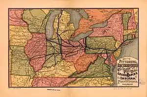 The Pittsburgh, Fort Wayne and Chicago Railway was a major part of the Pennsylvania Railroad system, extending the PRR west from Pittsburgh, Pennsylvania, via Fort Wayne, Indiana, to Chicago, Illinois. It included the current Norfolk Southern-owned Fort Wayne Line east of Crestline, Ohio, to Pittsburgh, and the Fort Wayne Secondary, owned by CSX, from Crestline west to Tolleston in Gary, Indiana. CSX leased its entire portion in 2004 to the Chicago, Fort Wayne and Eastern Railroad (CFE). The remaining portion of the line from Tolleston into Chicago is now part of the Norfolk Southern's Chicago District, with a small portion of the original PFW&C trackage abandoned in favor of the parallel lines of former competitors which are now part of the modern NS system.