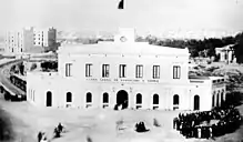 Barcelona Metro line 3 station was opened on 30 December 1924 with the opening of the line between this station and Lesseps.[7][8] This part of the line was the first metropolitan railway and the starting of Barcelona Metro network, which was managed by Gran Metro and was called Gran Metropolitano de Barcelona.[9][10] Initially, the station was not linked to the Transversal station when this one was opened. After the municipalization of the company during the 1960s, the platforms were extended to hold a fifth car and a corridor to link both metro lines was built. During the 1980s the former corridor that linked the station with Rodalies was closed, but today is still preserved although it is not used. In 2007 the access from Rivadeneyra street was closed because a transformer was installed in to provide more electrical power to the line. Some years before, one of the accesses located on the south part of the square was closed due to vandalism.