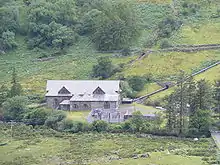 The electricity was to be produced at a hydro electric power station further up the Gwynant Valley and surplus power was to be available for local domestic and industrial use. This part of the scheme was actually built and the power station still operates.