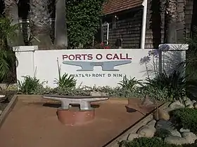 Ports O’ Call Village, located along the Port of Los Angeles main channel in San Pedro, was a seaside plaza that featured souvenir and gift shops, along with restaurants, sweetshops, fish markets and quick-bite eateries.[2] This New England-style seaside village encompassed 15 acres of shops, restaurants and attractions. A meandering promenade of cobblestone streets connects the specialty shops.[3]