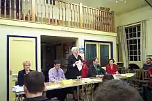 On 28 April the leaders of the three main political parties appeared on the BBC's Question Time programme. Each faced half an hour of questions from the audience in turn, but did not engage in direct debate with each other; while Conservative leader Michael Howard was keen for such a debate to take place, Tony Blair refused to participate. The programme's format was agreed upon as a compromise.