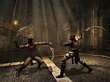 Prince of Persia: Warrior Within is an action-adventure video game and sequel to Prince of Persia: The Sands of Time. Warrior Within was developed and published by Ubisoft, and released for GameCube, Microsoft Windows, PlayStation 2 and Xbox. It picks up where The Sands of Time left off, adding new features, specifically, options in combat. The Prince has the ability to wield two weapons at a time as well as the ability to steal his enemies' weapons and throw them. The Prince's repertoire of combat moves has been expanded into varying strings that allow players to attack enemies with more complexity than was possible in the previous game. Warrior Within has a darker tone than its predecessor adding in the ability for the Prince to dispatch his enemies with various gory finishing moves. In addition to the rewind, slow-down, and speed-up powers from Sands of Time, the Prince also has a new sand power: a circular "wave" of sand that knocks down all surrounding enemies as well as damaging them. The game was generally well received with the praise being directed towards the newly introduced combat system and the soundtrack.