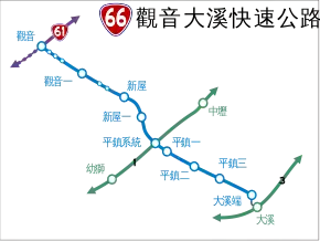 Provincial Highway 66 (Chinese: 台66線) is an expressway, which begins in Guanyin District, Taoyuan City on Provincial Highway 61 and ends in Daxi District, Taoyuan City, on County Road 112A.