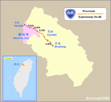 Provincial Highway 68 (Chinese: 台68線) is an expressway, which begins in Hsinchu City at Nanliao on the Provincial Highway No. 15 and ends in Zhudong on Zhongfeng Road (Provincial Road No. 3).