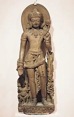 The archaeological finds also indicate a widespread presence of Tantric Buddhism, Mahayana Buddhism and Hinduism. Avalokiteśvara (Lokanatha) (called Lawkanat in Burmese; လောကနတ် [lɔ́ka̰ naʔ]), Tara, Manusi Buddhas, Vaiśravaṇa, and Hayagriva, all prominent in Mahayana Buddhism, were very much part of Pyu (and later the Pagan) iconography scene. Various Hindu Brahman iconography ranging from the Hindu trinity, Brahma, Vishnu and Shiva, to Garuda and Lakshmi have been found, especially in Lower Burma.[37]