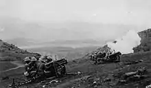 The 22nd (Derajat) Indian Frontier Force mountain battery arrived in the East Africa campaign on 18 December 1916, when they relieved the 28th Battery which returned to India.[4] They appear to have re-equipped from the 10-pounder mountain gun to the 3.7-inch howitzer while in East Africa, and first used the new weapon in action in an attack on German positions at Medo, 11 April 1918.[5]