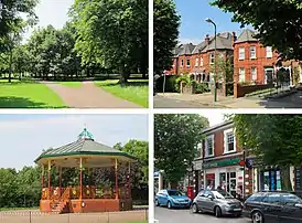 ![]() From top left to bottom right: The northern entrance to Queen's Park; Victorian houses on Chevening Road; The bandstand in Queen's Park; Queen's Park Post Office on Salusbury Road | |