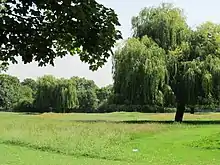 Designed without any straight paths, Queen's Park makes extensive use of bold tree planting and shrubberies with natural outlines, and large open areas of lawn for recreation and sport.[10]