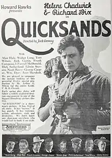 Quicksands is a 1923 American silent crime drama film directed by Jack Conway and written by Howard Hawks. The film was released on February 28, 1923, by American Releasing Corporation.[1][2]