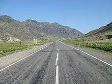 The Russian route R256, also known as Chuya Highway or Chuysky Trakt (Чуйский тракт), is a trunk road in Novosibirsk Oblast, Altai Krai and Altai Republic of Russia. Its length is 953 kilometres. The width is 7 metres. It is also a part of the Asian Highway AH4.