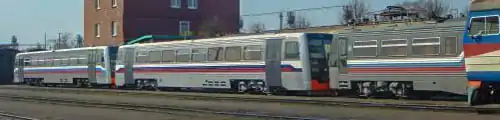 RA1 (Russian: РА1 - рельсовый автобус, тип 1) (Rail Bus, 1st type) - a series of rail buses that unified structurally with metrovagon. It is produced by JSC "Metrovagonmash". That is an independent mobile unit for the carriage of passengers. The term "Motor coach" is considered more correct by the majority of specialists. However PA1 is classified exactly as "railbuses" in the JSC "Metrovagonmash" factory documentation. Designed for the transport of passengers on non-electrified sections of railways and can be used for urban, suburban and interregional communication. Railbus have cabins at both ends of the car, and do not require a turn. At the same time, RA1 can be operated singly and in the system of many units (in pairs with 2-3 sections) both. The family PA1 is represented by six models. The body, the crew and the undercarriage are made on the basis of the "Yauza" subway wagons.