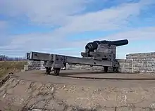 ![]() A gun on a wooden slide carriage in the 19th century. | |