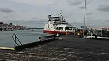 In 2014, plans came to light for the relocation of Red Funnel's Southampton terminal, as part of the redevelopment of the derelict Royal Pier.[9] The plans would include relocating the vehicle and foot passenger terminals to a new site at Trafalgar Dry Dock, also known as Pier 50.[10] Plans were approved in 2016,[11] and Red Funnel was supposed to relocate at the end of 2017.[12][13] However, Southampton City Council terminated the deal to relocate the Royal Pier in August 2019,[14] with the impact on the project to relocate the Red Funnel terminals unclear.[15]