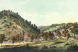 Red Sulphur Springs was known as a watering place since 1800. The springs were purchased by Dr. William Burke of Richmond in 1830, who built a hotel to accommodate up to 350 guests. Among the notable guests to the springs were Chief Justice of the Supreme Court Roger Taney and Francis Scott Key. The resort was disrupted by the Civil War. Ownership passed to Levi Morton, who had been Vice-President of the United States under Benjamin Harrison. He expanded the hotel, but the resort eventually failed. It was sold during World War I and divided into parcels, and the buildings demolished.[2]