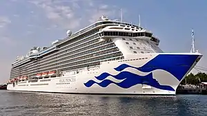 Construction progressed faster than expected and the ship arrived 13 days ahead of schedule.[6] She was delivered to Princess Cruises on 11 May 2014 in a ceremony at Fincantieri's shipyard in Monfalcone.[5] She had her official naming ceremony in Fort Lauderdale, Florida, on 5 November 2014 and was officially christened by the original cast of The Love Boat: Gavin MacLeod, Fred Grandy, Ted Lange, Bernie Kopell, Lauren Tewes, and Jill Whelan.[4][11]