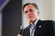 On November 7, most major American news networks called the election a victory for Biden when vote-counting in Pennsylvania and Nevada reached the point where he would certainly receive the 270 electors' votes needed for the presidency. The Trump campaign refused to concede defeat and instead asserted that "the election was far from over."[37] Several leading Republicans, including former 2012 Republican Presidential Candidate Mitt Romney, Larry Hogan, John Kasich, Phil Scott, Adam Kinzinger, Will Hurd, Paul Mitchell, Fred Upton, Lamar Alexander, Tom Reed, and Jeb Bush, proceeded to congratulate Biden as the new President-elect (and Kamala Harris as Vice President-elect) of the United States; others such as Josh Hawley and Paul Gosar insisted that the election was not over yet until "all lawful votes have been counted, recounts finished, and allegations of fraud addressed."[38][39][40] Just before the media called the election, re-elected Texas Congressman Dan Crenshaw tweeted "If Trump loses, he loses. It was never an impossible outcome and we must accept the final results when it is over," to which newly elected Georgia Congresswoman Marjorie Taylor Greene (a QAnon conspiracy theory supporter) responded, "The time to STAND UP for (President Donald Trump) is RIGHT NOW. Republicans can't back down." Crenshaw criticized her for trying to "talk tough" and said: "You're a member of Congress now, Marjorie. Start acting like one," while stressing that any irregularity should be addressed.[41]