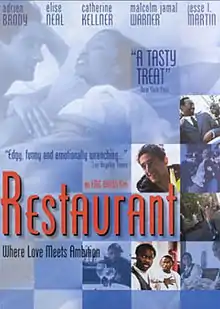 Restaurant is a 1998 independent film starring Adrien Brody, Elise Neal, David Moscow and Simon Baker. Written by Tom Cudworth and directed by Eric Bross, Restaurant was the follow-up to this writing–directing duo's first film, TenBenny, which also starred Adrien Brody. Restaurant premiered at the Los Angeles Independent Film Festival on April 17, 1998, and garnered Adrien Brody an Independent Spirit Award nomination for Best Male Lead. Set in Hoboken, New Jersey, Restaurant is a romantic comedy about young waiters with big dreams, but few chances to actually succeed.