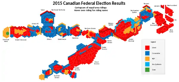 Seats won by riding - equal-area riding map