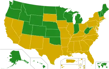 | West Virginia[66] | 29 | 8 | 37 | Semi-closed primary | 86,914 (35.8%) | 124,700 (51.4%) | 11 | 6 | 17 | 18 | 2 | 20 | 0 | 0 | 0 | |