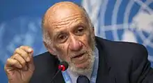 In 2001, Falk served on a United Nations High Commissioner for Human Rights (OHCHR) Inquiry Commission for the Palestinian territories[28] with John Dugard, a South African based in Leiden University in the Netherlands, and Kamal Hussein, former foreign minister of Bangladesh. Falk stated the two main issues: "One is evaluating whether the conditions of occupation are such as to give the Palestinians some kind of right of resistance. And if they have that right, then what are the limits to that right?" "The other issue at stake in this current inquiry is to evaluate how Israel as the occupying power is carrying out its responsibility to protect the society that is subject to its control."[29] After its investigation the commission issued a report, "Question of the violation of human rights in the occupied Arab territories, including Palestine."[30]