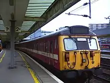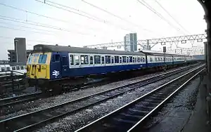 1957 | By 1990, "particularly poor" seating in "dingy saloons" meant these Birmingham-built trains had a short life. NSE inherited 20 vehicles (formed into ten two-coach sets) and had halved their number by 1994. The Gospel Oak to Barking Line and the lines out of Paddington and Marylebone used these trains, which could reach 75 miles per hour (121 km/h). | [32][33] |
