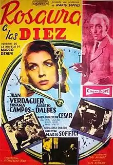 Rosaura at 10 O'Clock (Spanish: Rosaura a las 10) is a 1958 Argentine crime film directed by Mario Soffici. It was entered into the 1958 Cannes Film Festival.[1] It is based on a 1955 novel of the same name written by Marco Denevi.