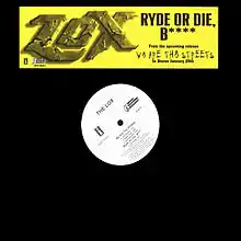"Ryde or Die, Bitch", (also known by its clean title, "Ryde or Die, Chick"), is the lead single released from The LOX's second album, We Are the Streets. The song was produced by Timbaland and featured him and Eve. It was the most successful single from the album, peaking at 73 on the Billboard Hot 100, 27 on the Hot R&B/Hip-Hop Songs and 22 on the Hot Rap Singles.